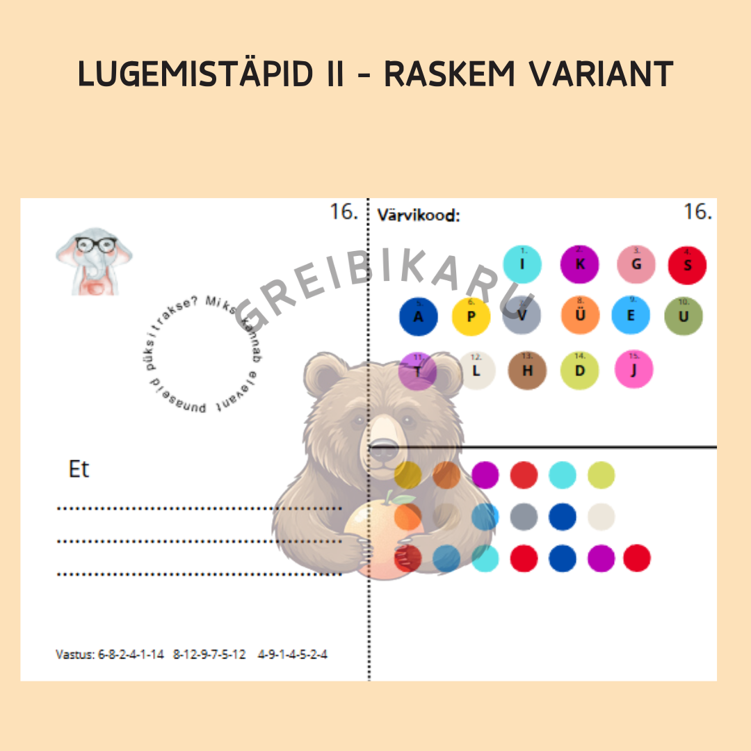 NB! Antud materjalist on olemas ka lihtsam, üksikute sõnade kokkulugemiseks mõeldud “Lugemistäpid I”
