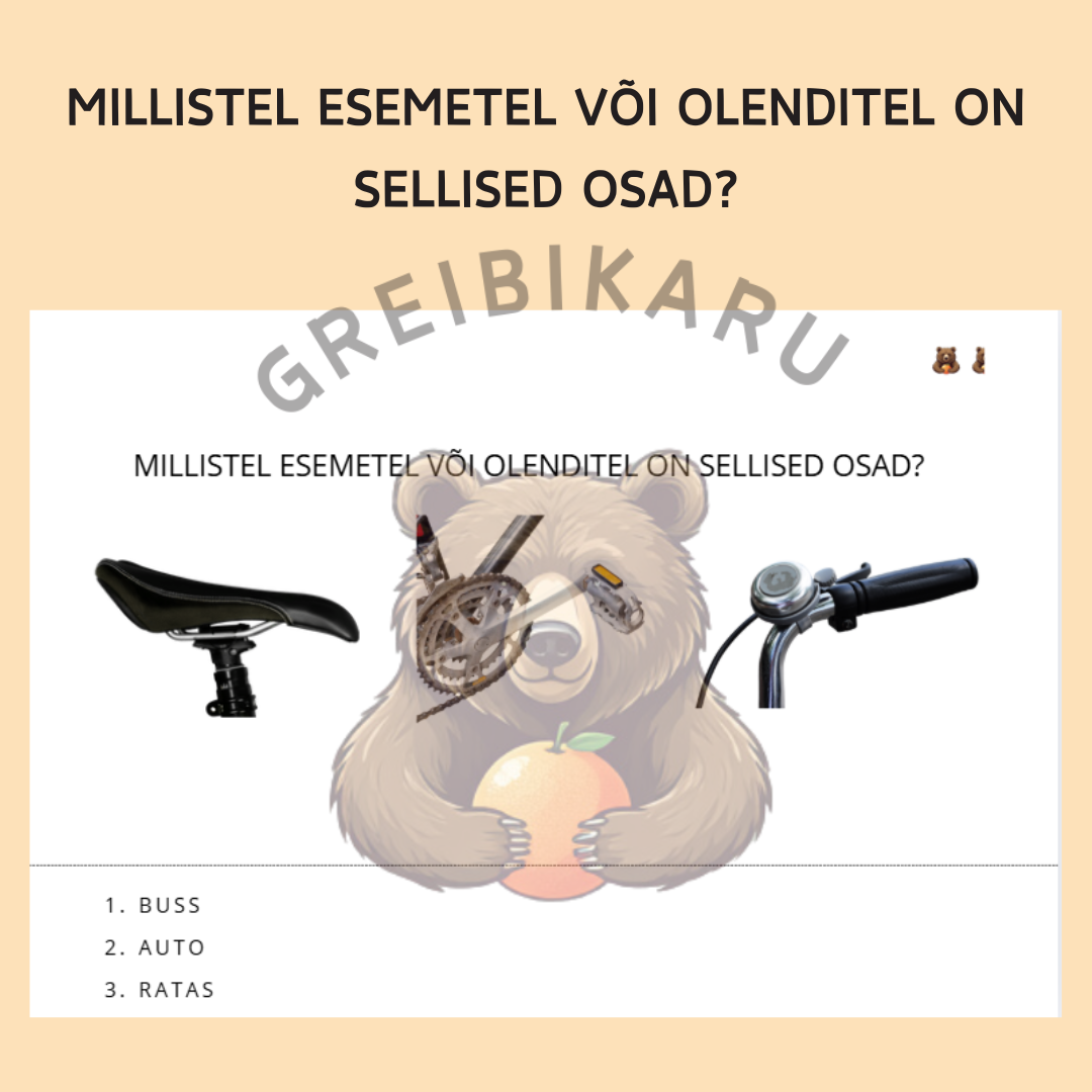 b) Keerukamad ülesanded (3 pilti 3 vastusevariandiga; pildimaterjal on sama, mis a-osas);
